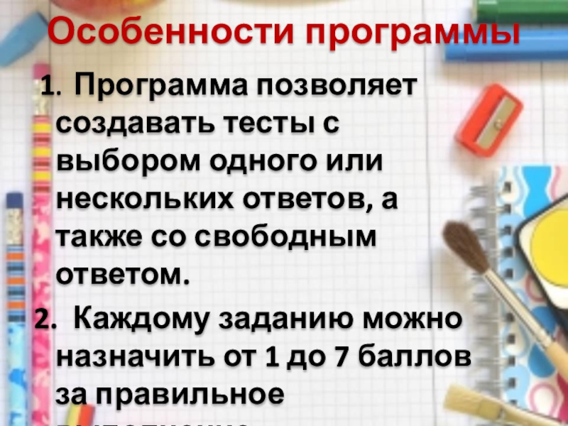 Это сайт презентаций, где можно хранить и обмениваться своими презентациями, докладами, проектами, шаблонами в формате PowerPoint с другими пользователями. Мы помогаем школьникам, студентам, учителям, преподавателям хранить и обмениваться учебными материалами.