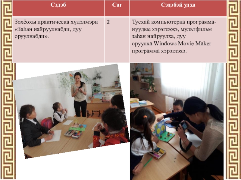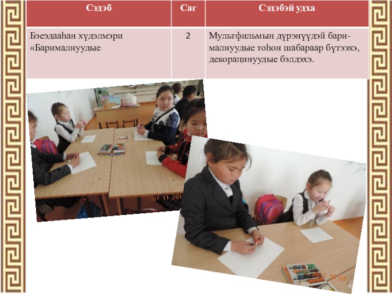 Хэрэгсэлнүүд:  - һурагшадай бүтээһэн мультфильмнүүд;  - тоһон шабараар хэгдэһэн багшын ба һурагшадай барималнууд,  -