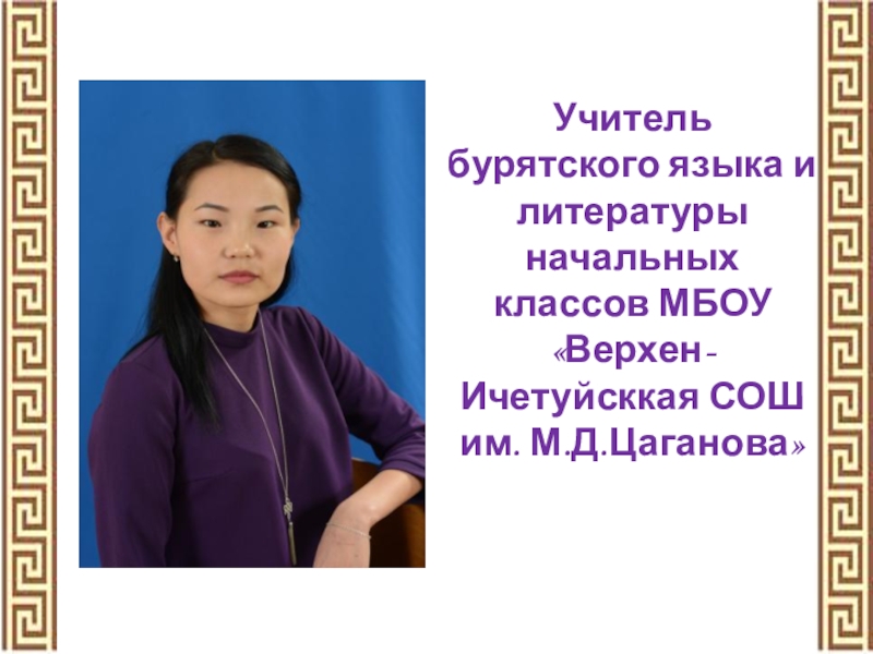 Слайд 2Учитель бурятского языка и литературы начальных классов МБОУ «Верхен-Ичетуйсккая СОШ им.