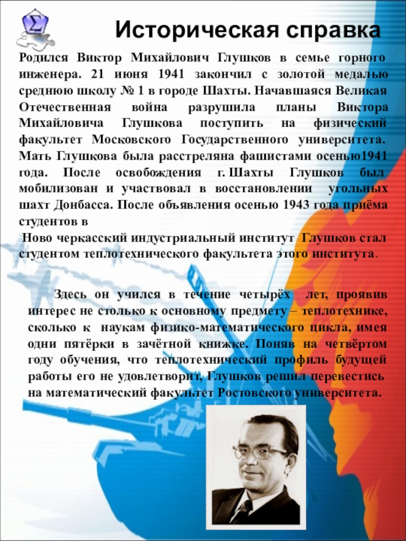 Здесь он учился в течение четырёх лет, проявив интерес не столько к основному предмету – теплотехнике, сколько к наукам физико-математического цикла, имея одни пятёрки в зачётной книжке. Поняв на четвёртом году обучения, что теплотехнический профиль будущей работы его не удовлетворит, Глушков решил перевестись на математический факультет Ростовского университета.