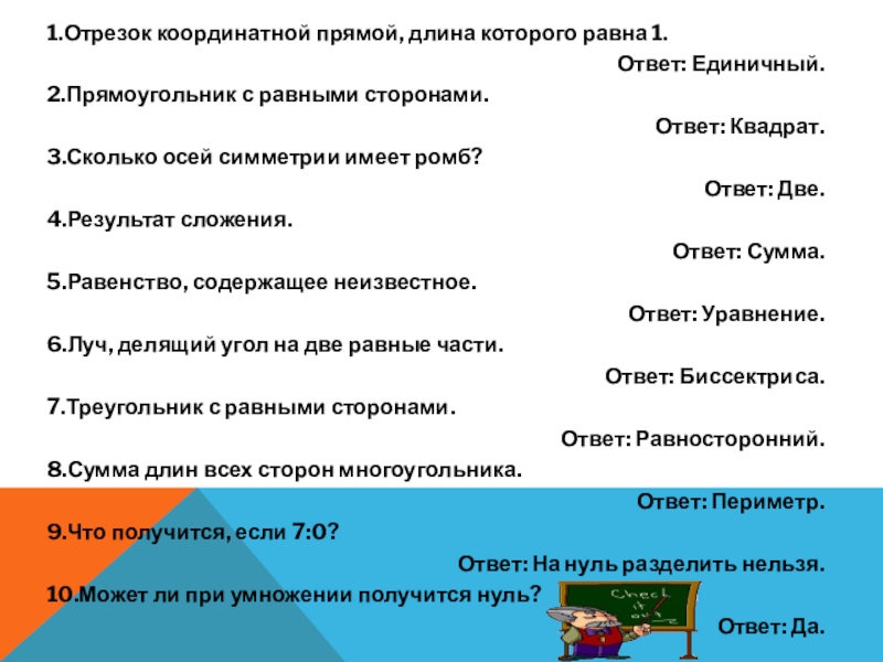Слайд 154-й раунд: Математические задачки – шутки: