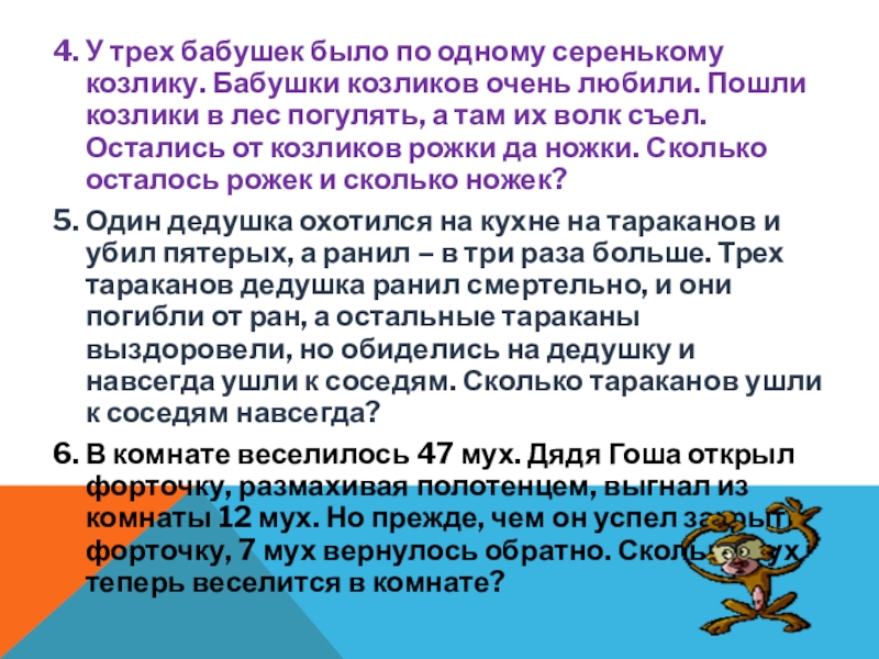Слайд 174. У трех бабушек было по одному серенькому козлику. Бабушки козликов