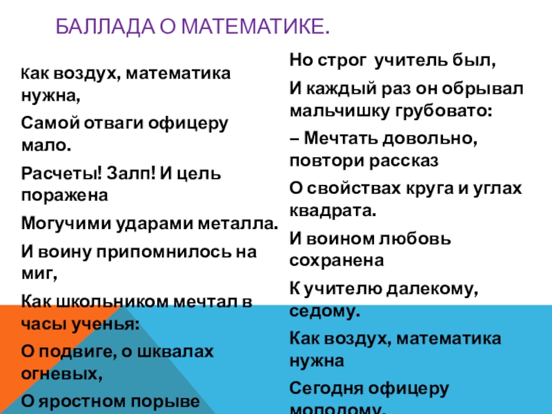 БАЛЛАДА О МАТЕМАТИКЕ.