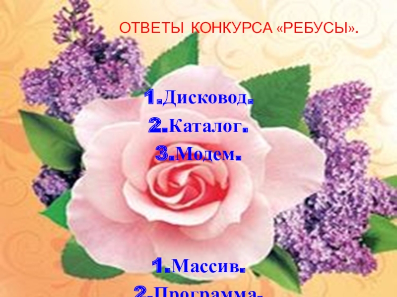 Слайд 11ОТВЕТЫ КОНКУРСА «РЕБУСЫ».