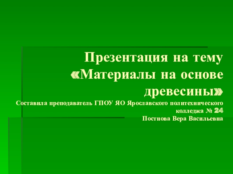 Слайд 1Презентация на тему «Материалы на основе древесины»