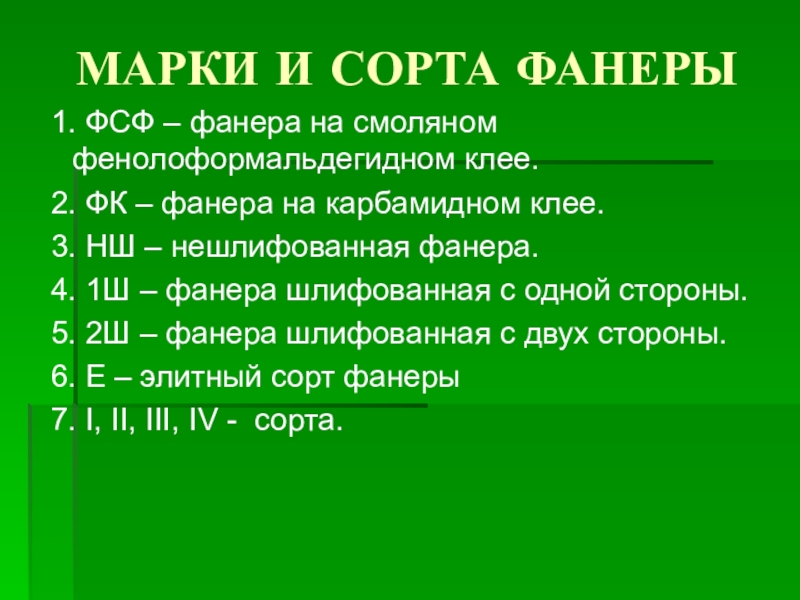 Слайд 18МАРКИ И СОРТА ФАНЕРЫ