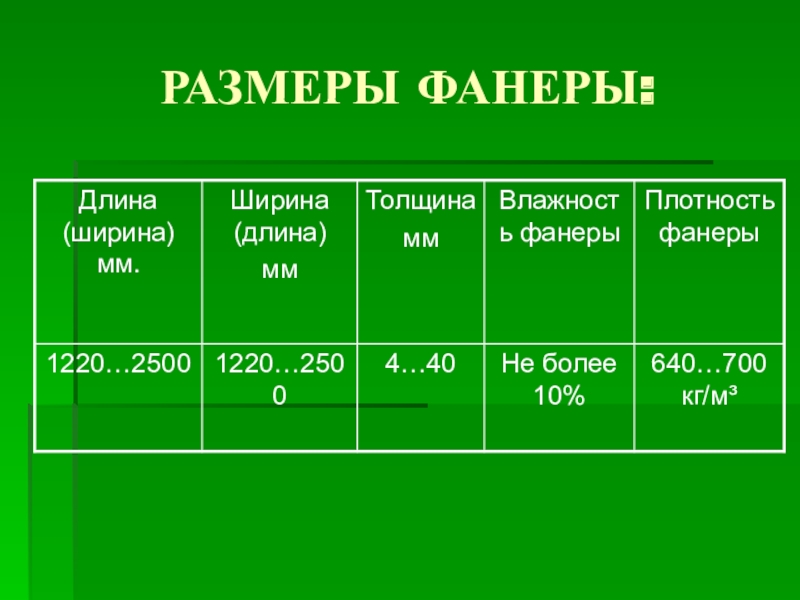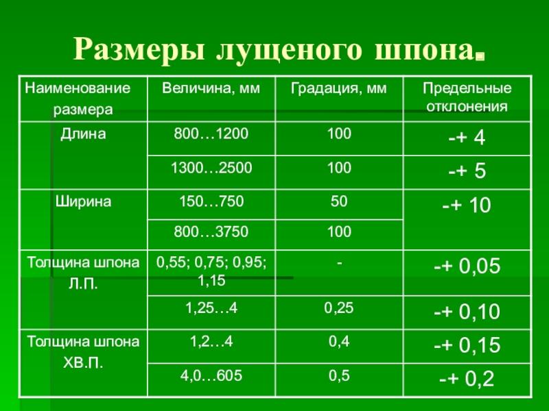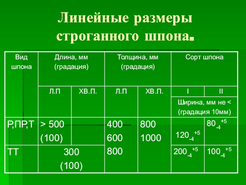 Слайд 10Линейные размеры строганного шпона.