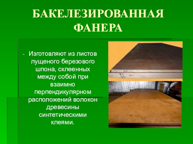Слайд 36БАКЕЛЕЗИРОВАННАЯ ФАНЕРА