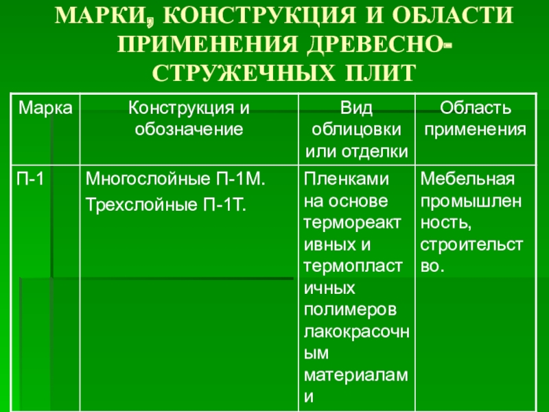 Слайд 49МАРКИ, КОНСТРУКЦИЯ И ОБЛАСТИ ПРИМЕНЕНИЯ ДРЕВЕСНО- СТРУЖЕЧНЫХ ПЛИТ