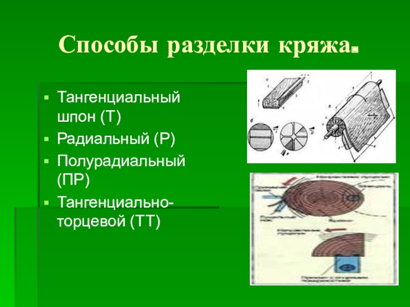 Слайд 7Способы разделки кряжа.