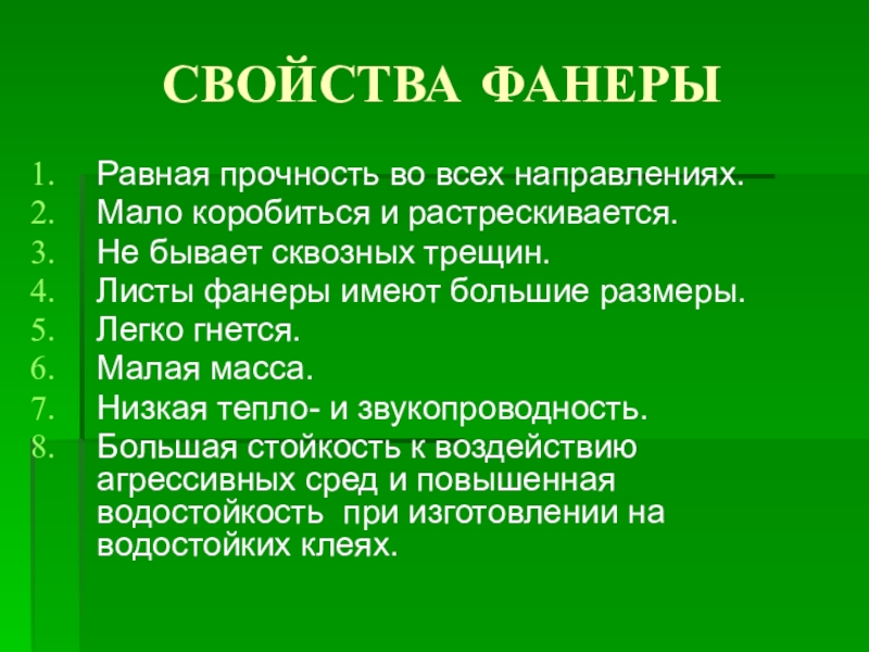 Слайд 17СВОЙСТВА ФАНЕРЫ