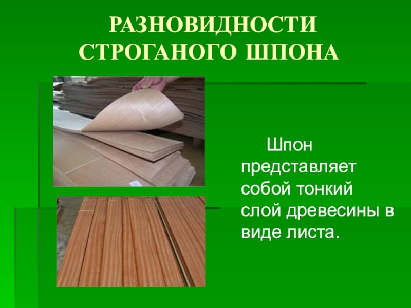 Слайд 6 РАЗНОВИДНОСТИ СТРОГАНОГО ШПОНА