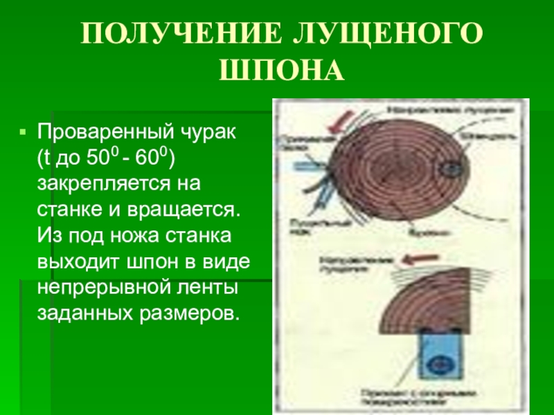 Слайд 12ПОЛУЧЕНИЕ ЛУЩЕНОГО ШПОНА