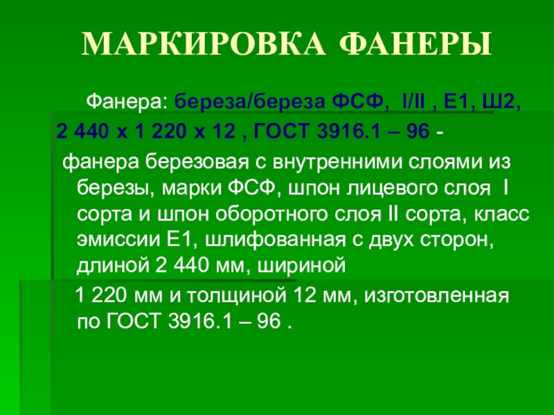 2 440 х 1 220 х 12 , ГОСТ 3916.1 – 96 -