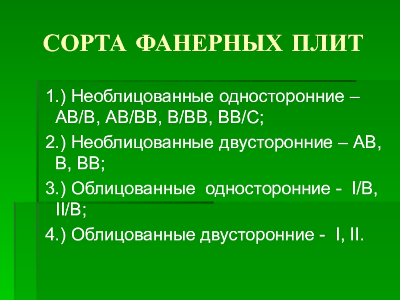 Слайд 25СОРТА ФАНЕРНЫХ ПЛИТ