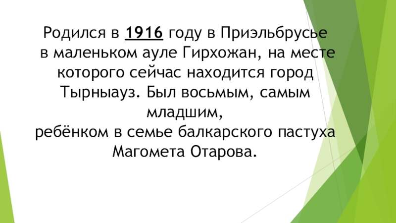 Слайд 2Родился в 1916 году в Приэльбрусье