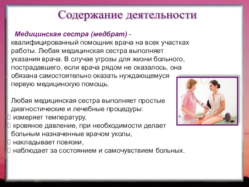 Содержание деятельности