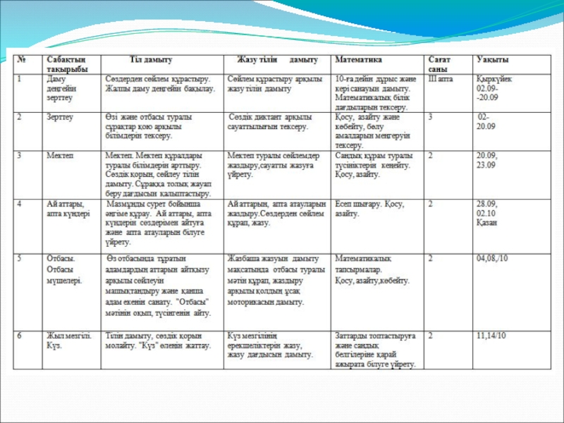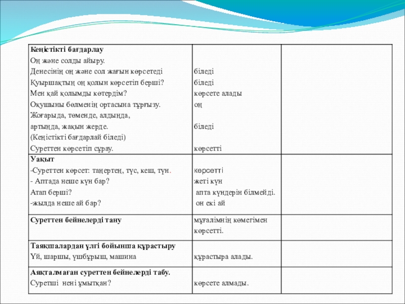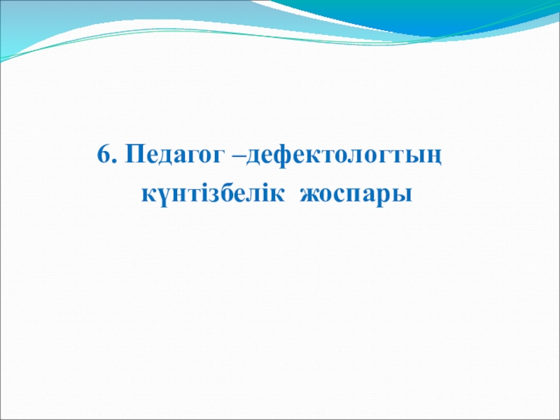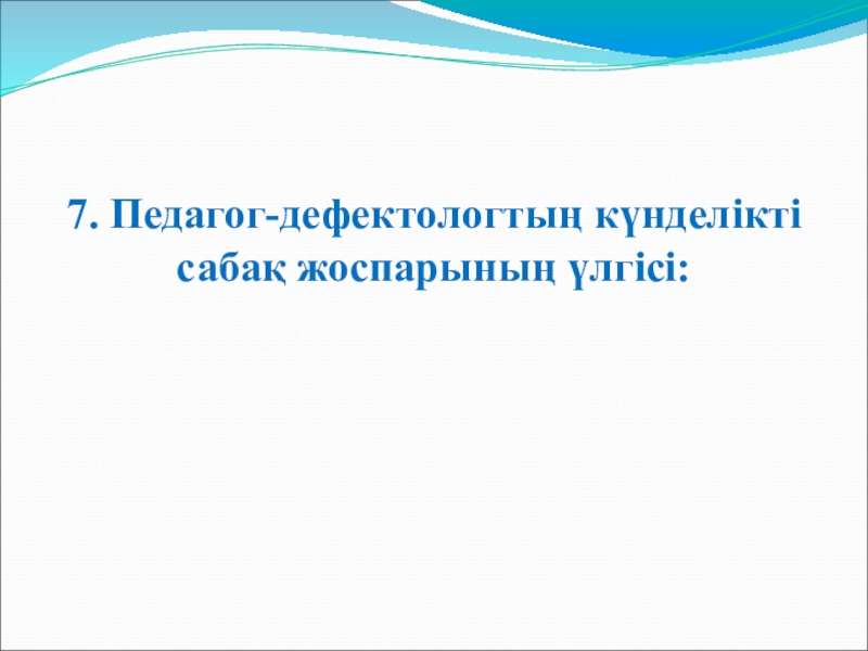 Слайд 357. Педагог-дефектологтың күнделікті сабақ жоспарының үлгісі: