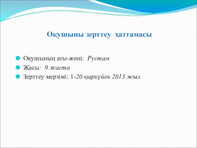 Слайд 7 Оқушыны зерттеу хаттамасы