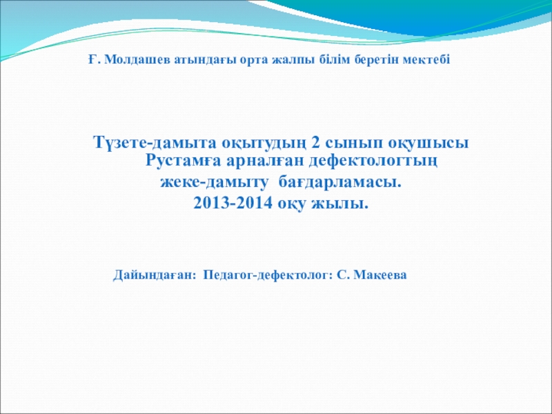Слайд 112. Оқушының жеке түзете-дамыту бағдарламасы
