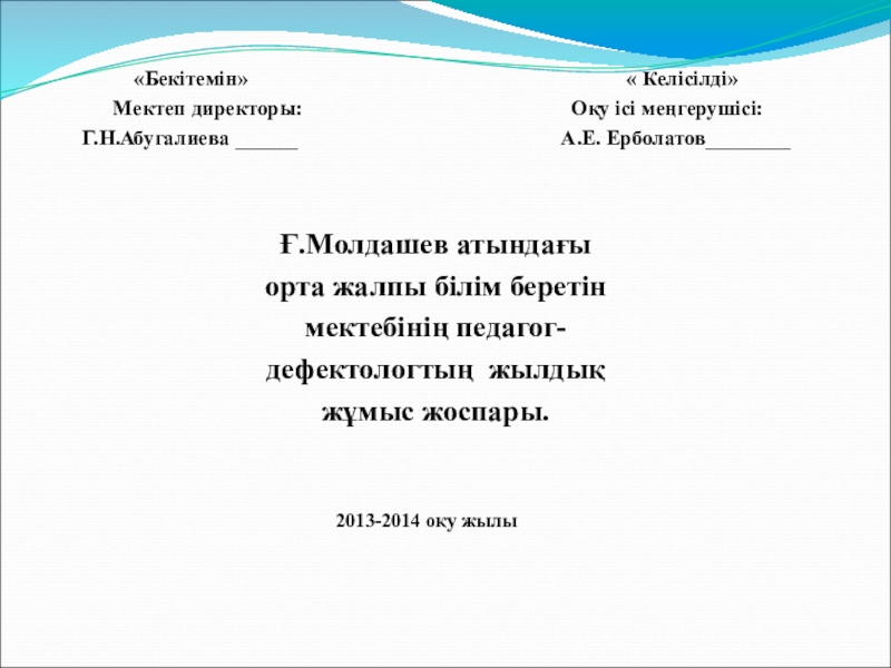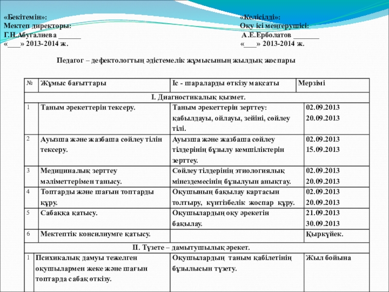 Слайд 235. Педагог-дефектологтің жылдық жұмыс жоспары