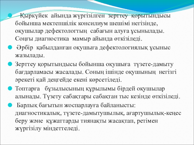 Слайд 3 Қыркүйек айында жүргізілген зерттеу қорытындысы бойынша мектепшілік консилиум шешімі