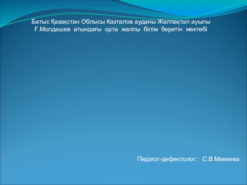 Дайындаған: Педагог-дефектолог: С. Макеева