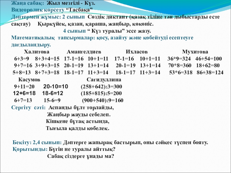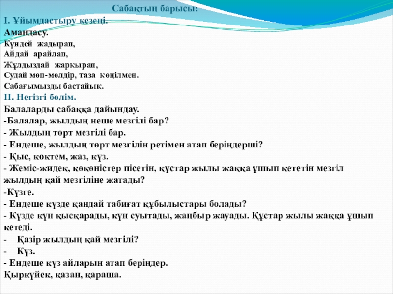 Слайд 38Жаңа сабақ: Жыл мезгілі - Күз.