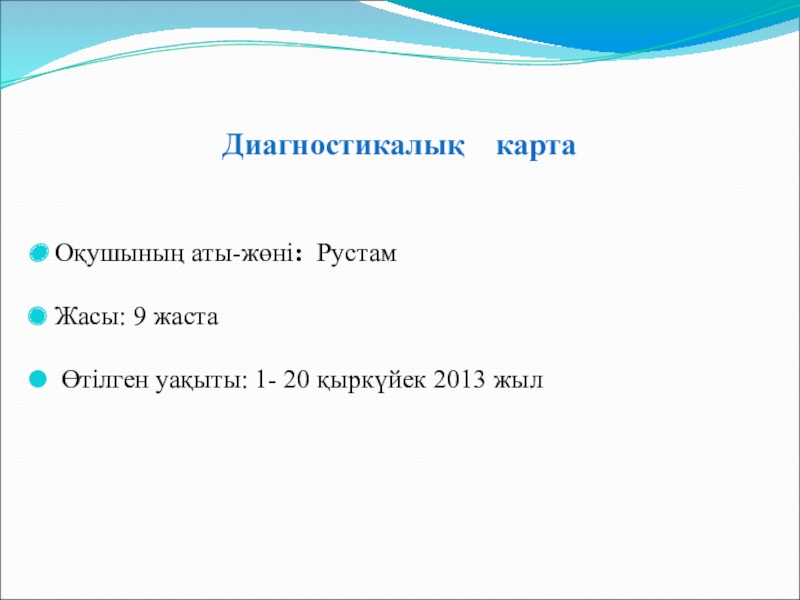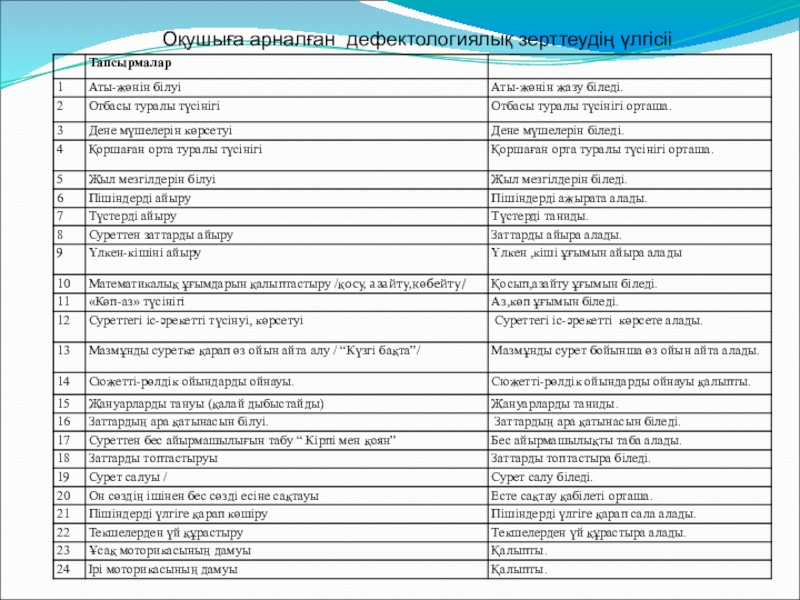 Слайд 6Оқушыға арналған дефектологиялық зерттеудің үлгісіі