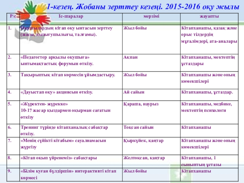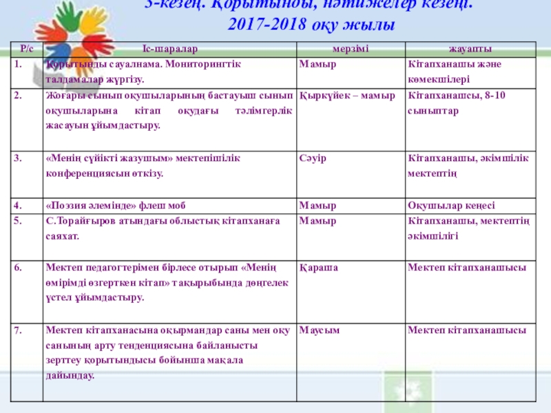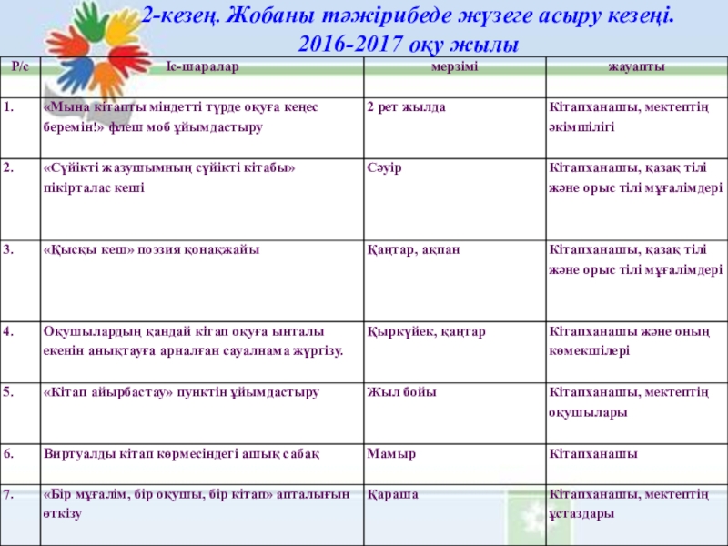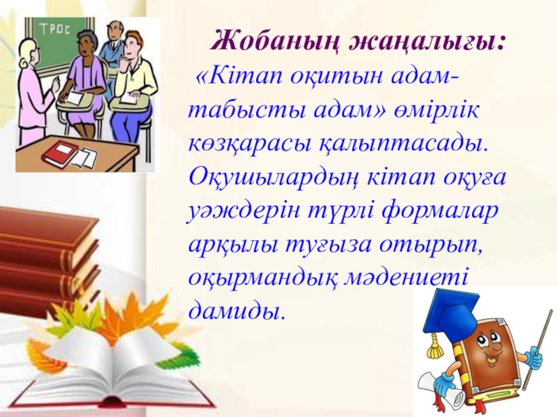 4. «Кітап оқып үйренеміз» және оқыған кітапты бірігіп талқылау.