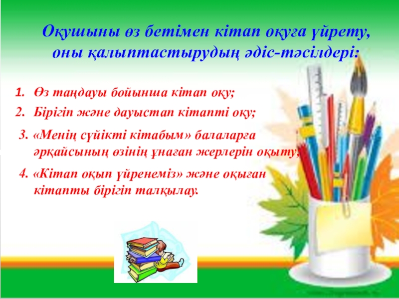 Оқушыны өз бетімен кітап оқуға үйрету, оны қалыптастырудың әдіс-тәсілдері: