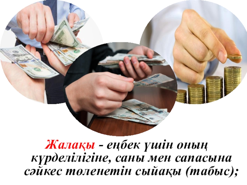 Слайд 9Жалақы - еңбек үшiн оның күрделiлiгiне, саны мен сапасына сәйкес төленетiн