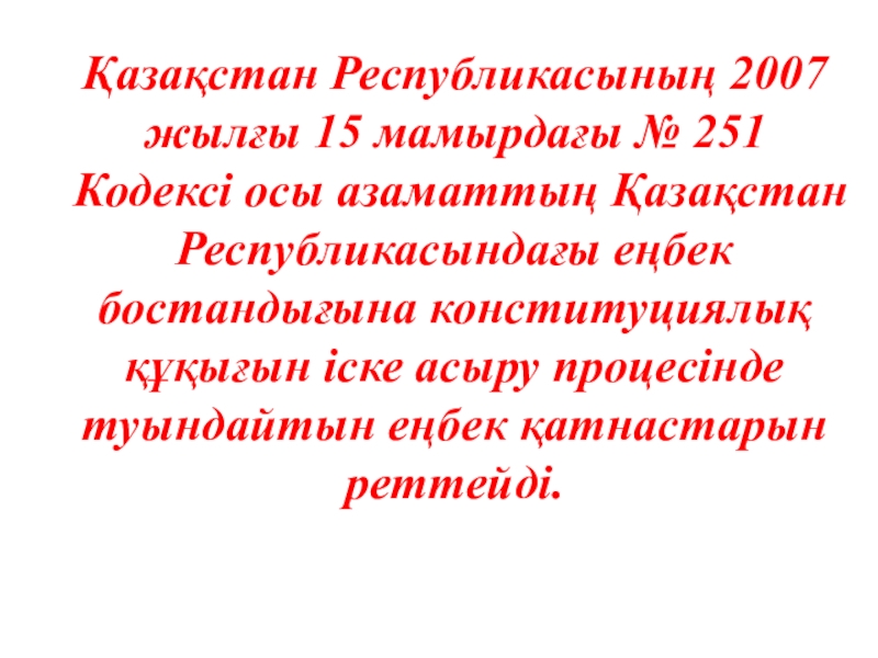 Слайд 1Қазақстан Республикасының еңбек кодексі