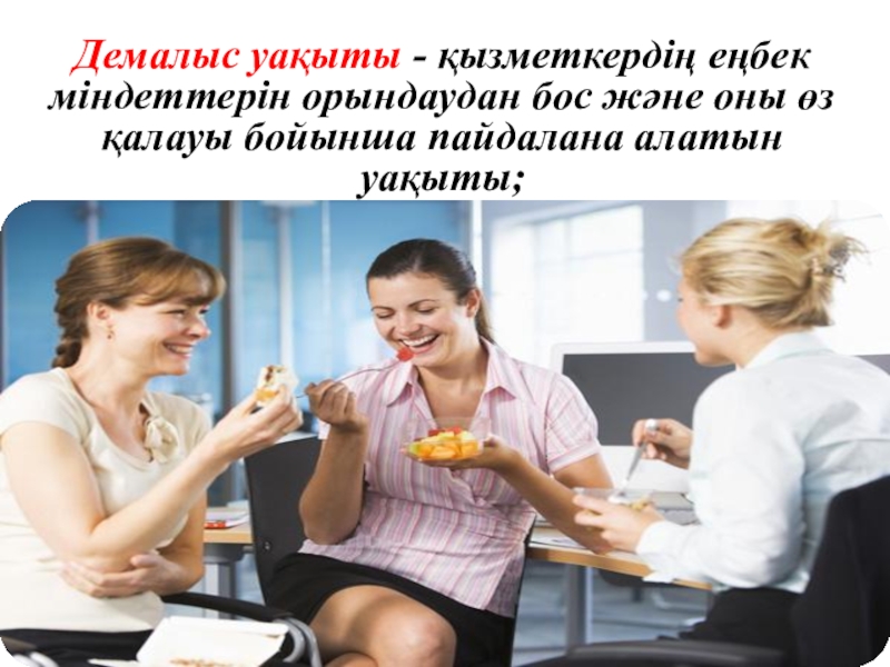 Слайд 8 Демалыс уақыты - қызметкердiң еңбек мiндеттерiн орындаудан бос және оны өз