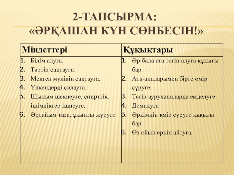 2-тапсырма:  «Әрқашан күн сөнбесін!»
