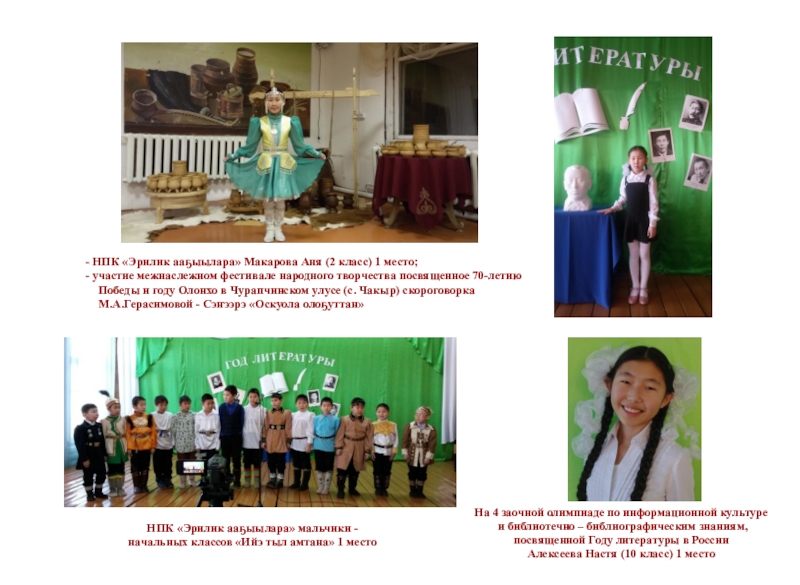 НПК «Эрилик ааҕыылара» Макарова Аня (2 класс) 1 место;
