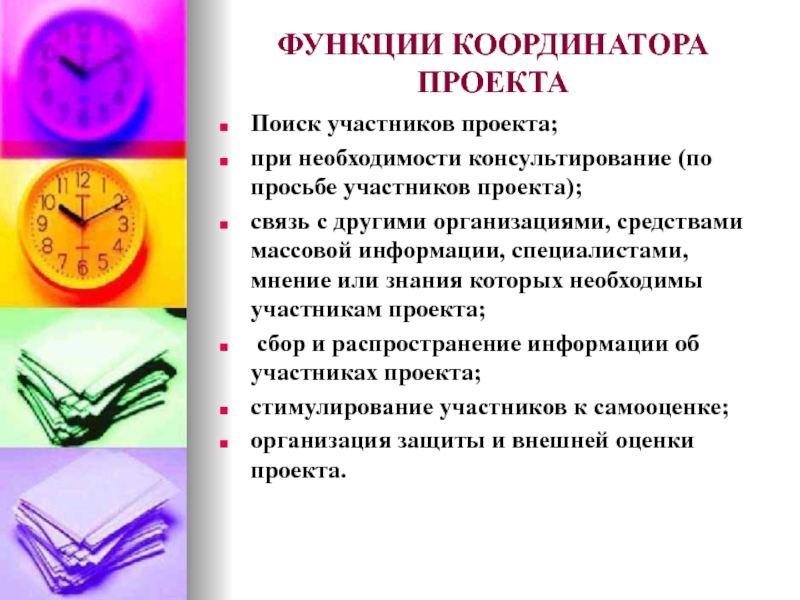 Слайд 30ФУНКЦИИ КООРДИНАТОРА ПРОЕКТА