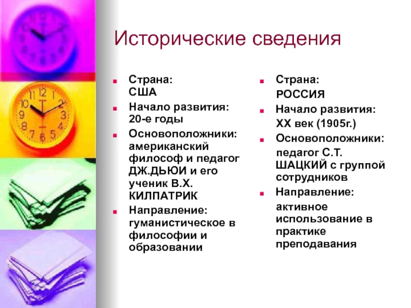 Основоположники: американский философ и педагог ДЖ.ДЬЮИ и его ученик В.Х.КИЛПАТРИК
