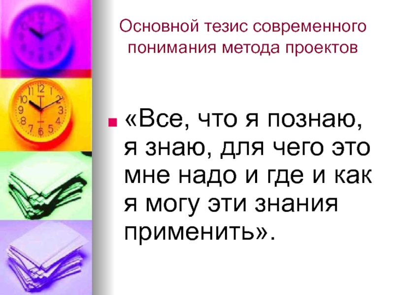 За основу была взята книга автора Полат «Обучение в сотрудничестве» и наработки, которые любезно предоставила нам методист информатики ИПО г. Севастополя Заторская Светлана Васильевна. Именно Светлана Васильевна первой в Севастополе стала заниматься проблемой «Метода проектов».