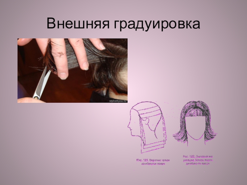 Внешняя градуировка Технология выполнения внешней градуировки.  1. Стрижку начинают с нижней пряди нижней затылочной зоны. Отчесывается