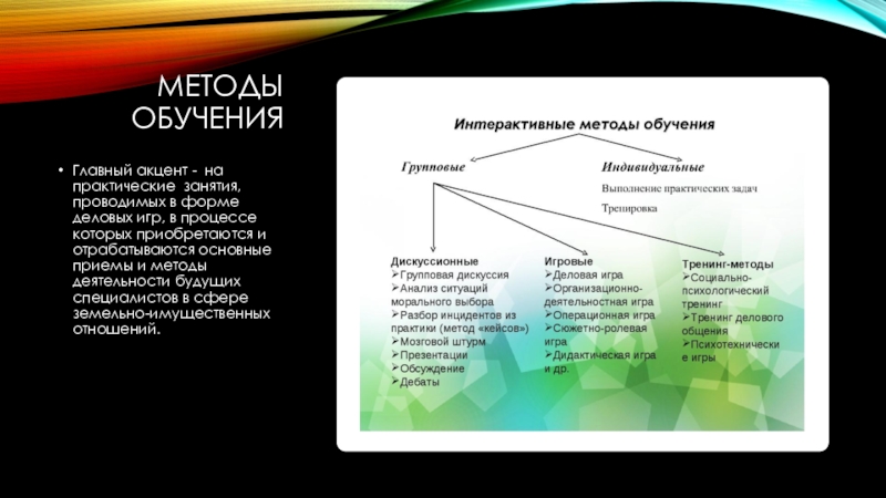 ПРЕДМЕТ ИССЛЕДОВАНИЯ: совокупность педагогических методов, направленных на получение студентами знаний и навыков в сфере земельно-имущественных отношений.