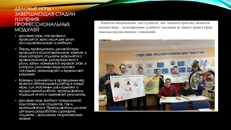 Слайд 16Деловые игры - завершающая стадии изучения профессиональных модулей