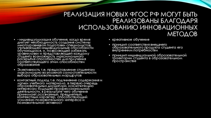 Слайд 10Реализация Новых ФГОС РФ могут быть реализованы благодаря использованию инновационных методов