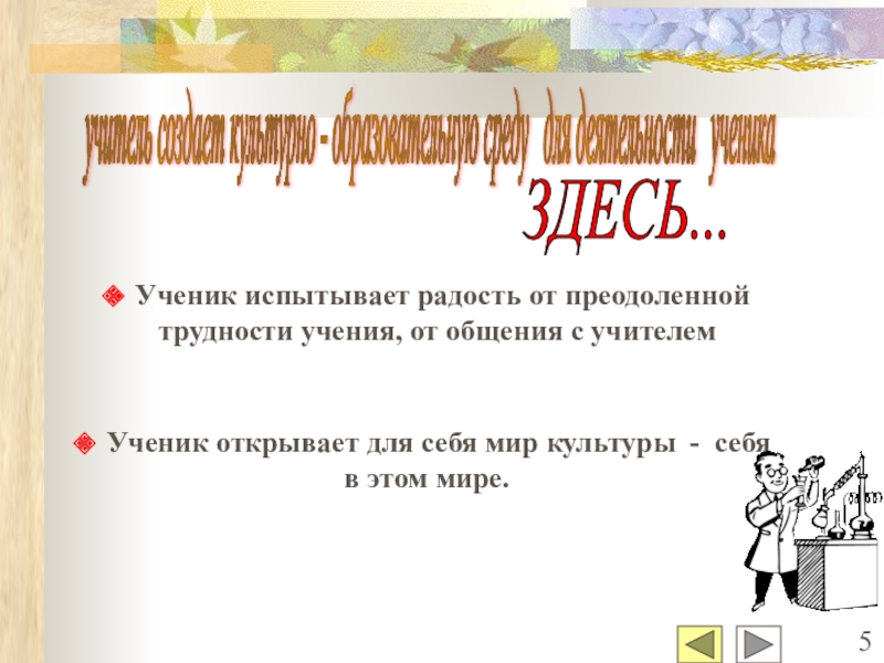 Ученик открывает для себя мир культуры - себя в этом мире.