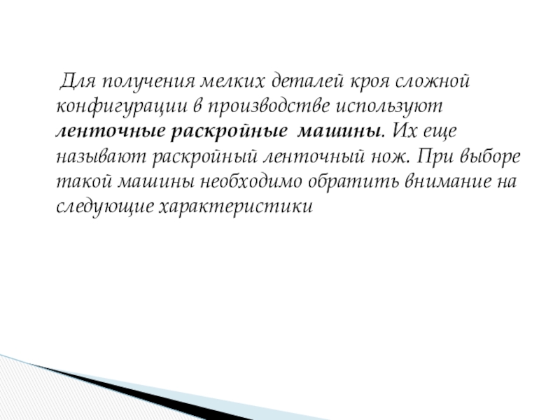 Слайд 13Ленточные раскройные машины достаточно крупногабаритные, поэтому для вырезания деталей кроя на