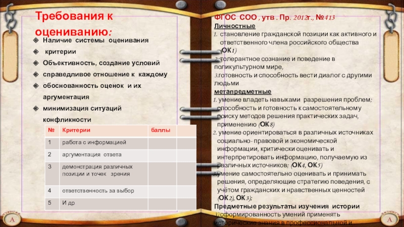 5) сформированность умений вести диалог, обосновывать свою точку зрения в дискуссии по исторической тематике.