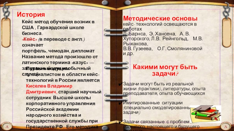Первым ведущим специалистом в области кейс-технологий в России является Киселев Владимир Дмитриевич, старший научный сотрудник Высшей школы корпоративного управления Российской академии народного хозяйства и государственной службы при Президенте РФ. Его методика написания кейса имеет свое специальное название — «КЕЙКИС».