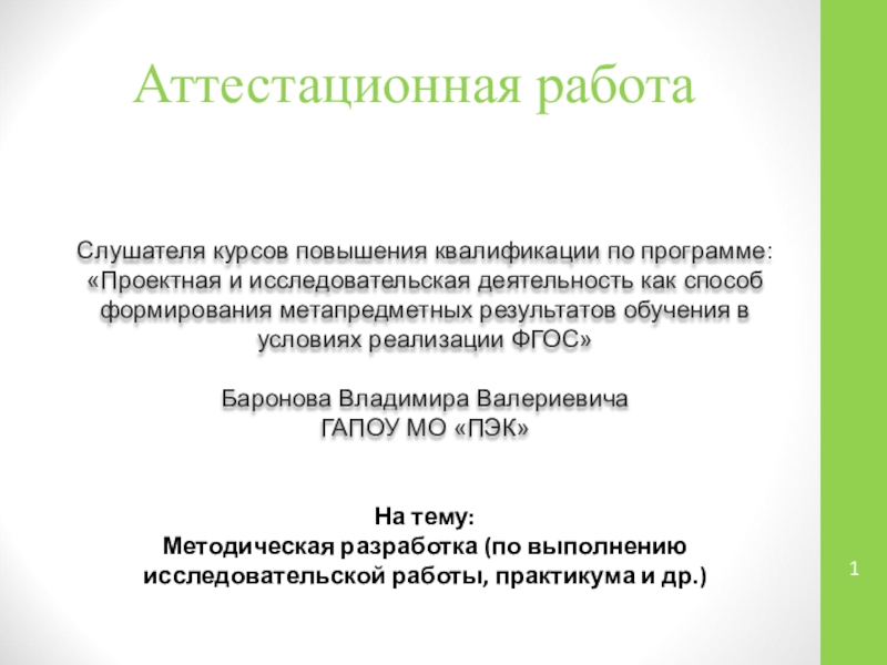 Методическая разработка (по выполнению исследовательской работы, практикума и др.)