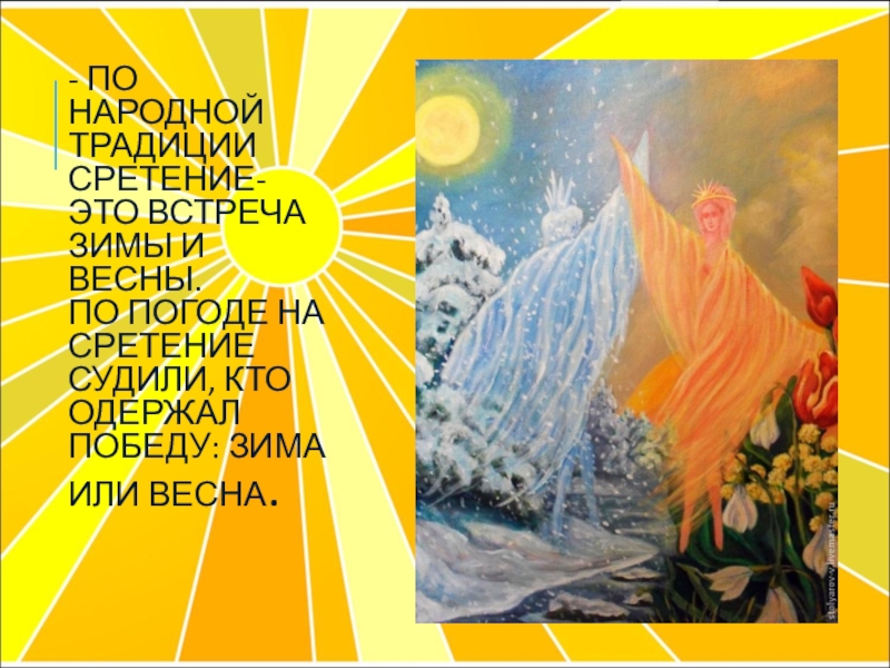 Слайд 11- ПО НАРОДНОЙ ТРАДИЦИИ СРЕТЕНИЕ- ЭТО ВСТРЕЧА ЗИМЫ И ВЕСНЫ.