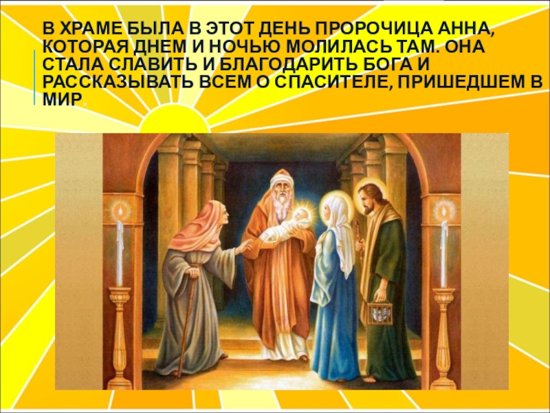 Слайд 6В ХРАМЕ БЫЛА В ЭТОТ ДЕНЬ ПРОРОЧИЦА АННА, КОТОРАЯ ДНЕМ И